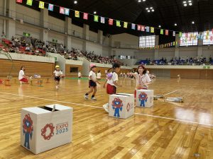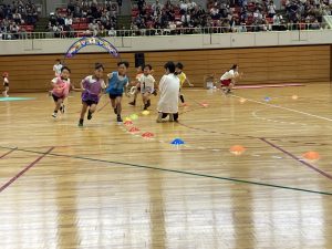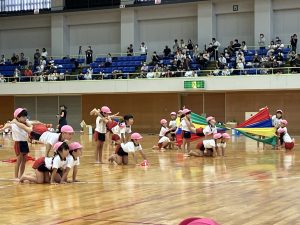 ゴール目指して、力いっぱい走ったり、音楽に合わせて体を動かしたり、心と力を合わせて表現したり、、、