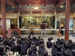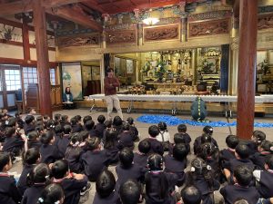 成道会 2025.12.05 12月8日は成道会の日。 今日はお寺の本堂に早翠幼稚園と第二早翠幼稚園の子どもたちが集まり、お釈迦様がお悟りを開かれたことをお祝いしました。 園長先生のお話を聞いて一人ずつ蝋燭をお供えしました。ゆらゆら揺らぐ炎はきれいでしたね。 お釈迦様の教えにちなんだ劇も楽しみました! お釈迦様の強く優しい教えを知ることができました。