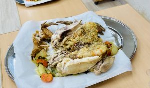 ウインタースクール[丸鶏一羽!ローストチキン] 2025.12.24 ウインタースクール[丸鶏一羽!ローストチキン]が開催されました。丸々一羽の鶏に子どもたちも大喜び!塩こしょう・にんにくをすり込んだり、おなかの中に餅米をつめたりとみんなで楽しく作りました♪ クリスマスの素敵な思い出になりましたね。